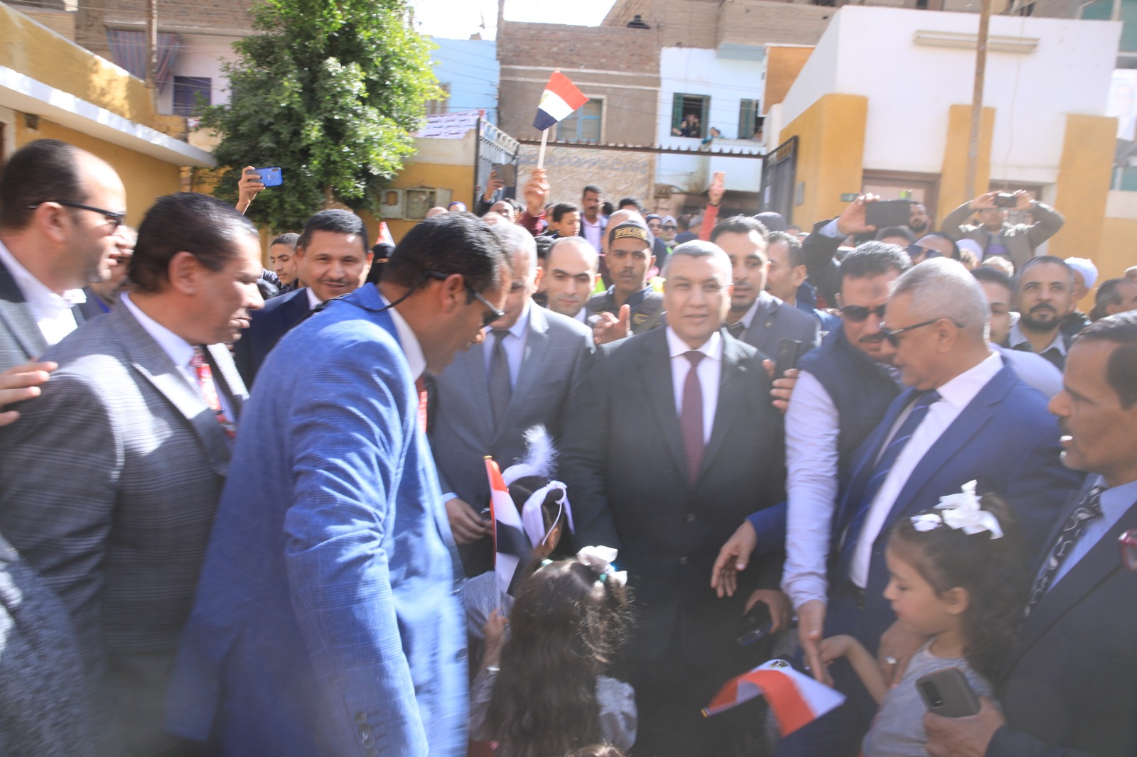 النائب مصطفى سالم يستقبل محافظ سوهاج خلال تفقده لجنة انتخابات مدرسة ساحل طهطا الابتدائية