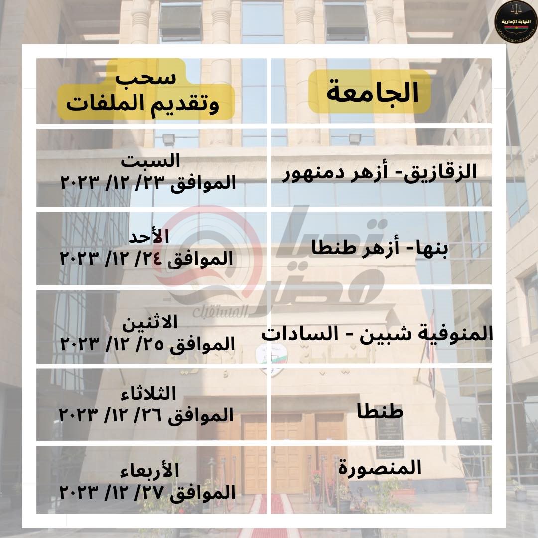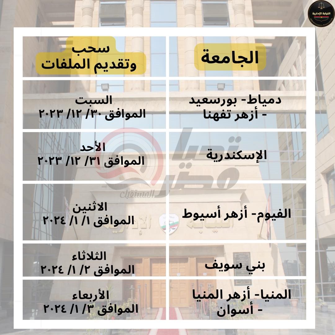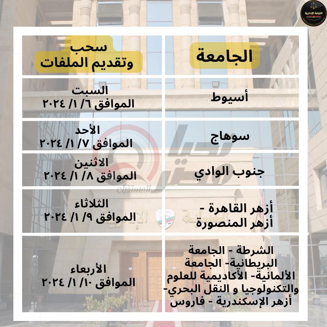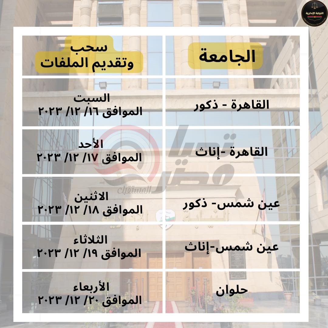 المواعيد كل جامعة بـ تقديم النيابة الإدارية