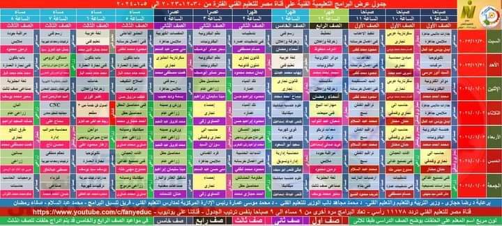 جدول مواعيد عرض قناة مصر للتعليم الفنى من السبت 30 ديسمبر 2022 الى الجمعة 05 يناير 2023.
