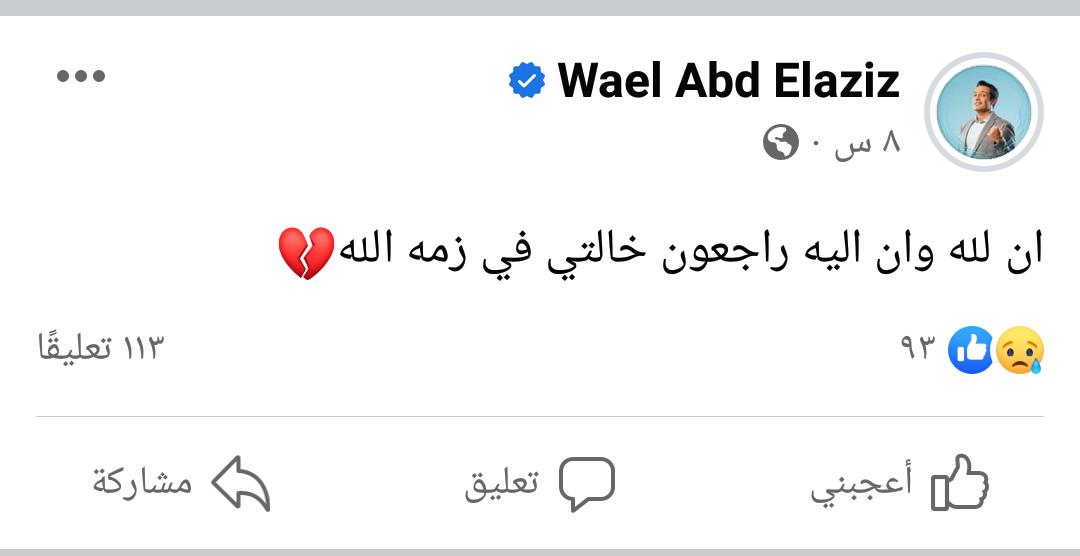 الموت يفجع الفنان وائل عبد العزيز في خالته| تفاصيل