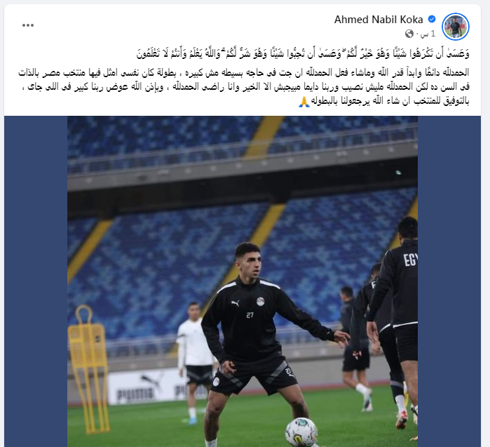 وواصل كوكا: «ربنا دايما مبيجبش الا الخير وانا راضى الحمدلله ، وبإذن الله عوض ربنا كبير فى اللى جاى ، بالتوفيق للمنتخب ان شاء الله يرجعولنا بالبطولة».