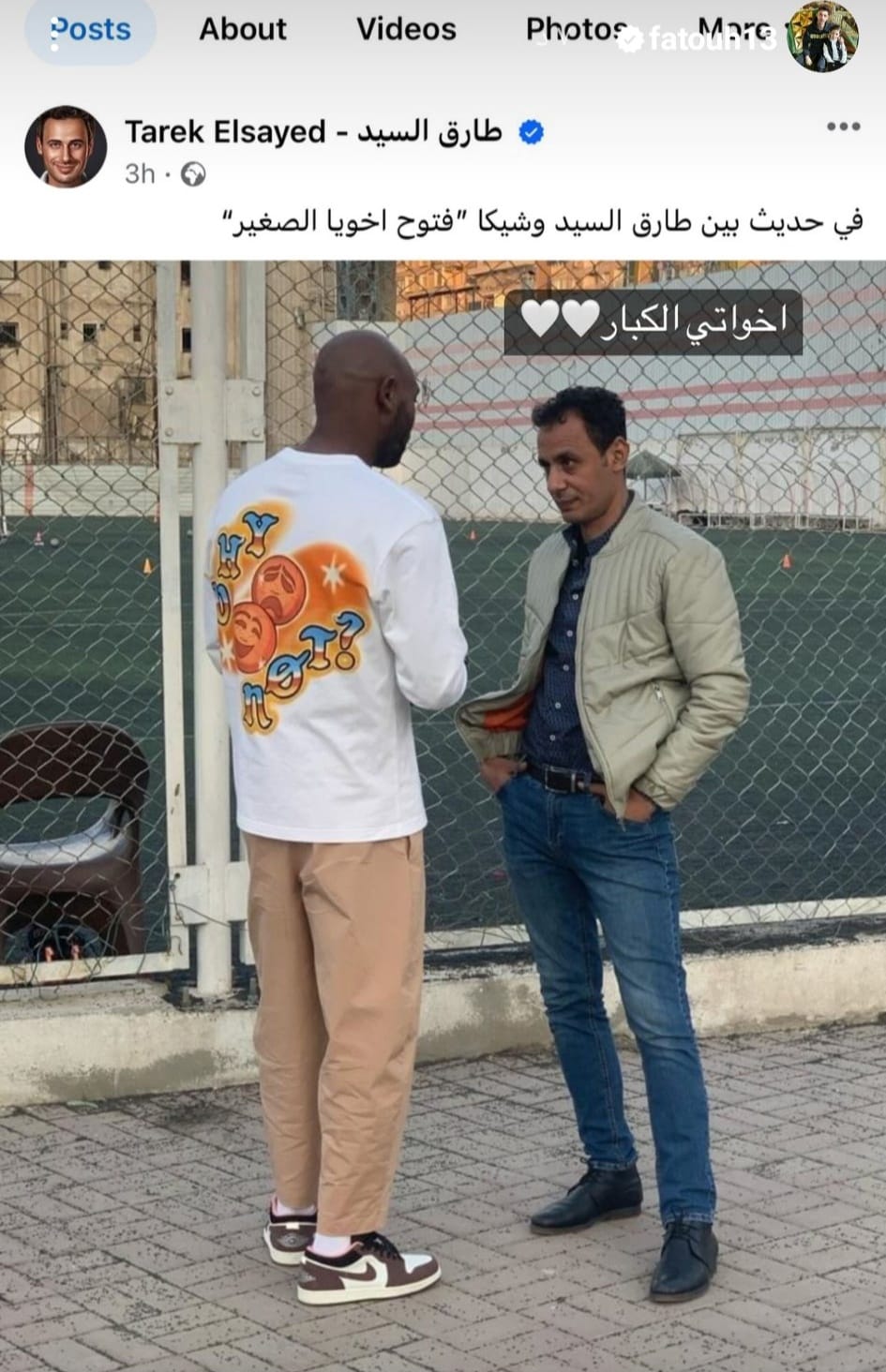 ونشر أحمد فتوح على صفحته الرسمية على انستجرام صورة تجمع طارق السيد بشيكابالا وعلق عليها: «اخواتي الكبار».
