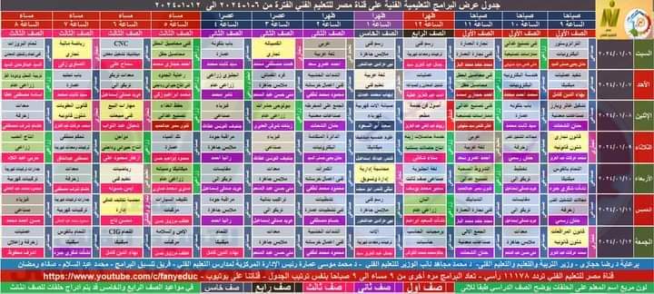 ننشر جدول عرض البرامج التعليمية الفنية على قناة مصر للتعليم الفني بدءا من غدا السبت