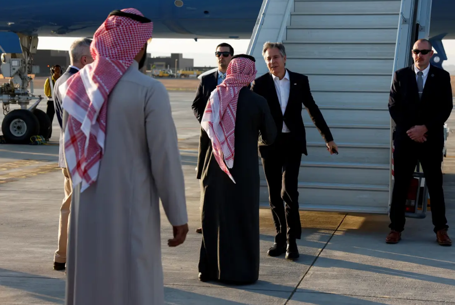 وصل وزير الخارجية الأميركي أنتوني بلينكن إلى السعودية، اليوم الاثنين، حيث سيلتقي ولي العهد السعودي الأمير محمد بن سلمان لمناقشة سبل وقف الحرب في قطاع غزة.