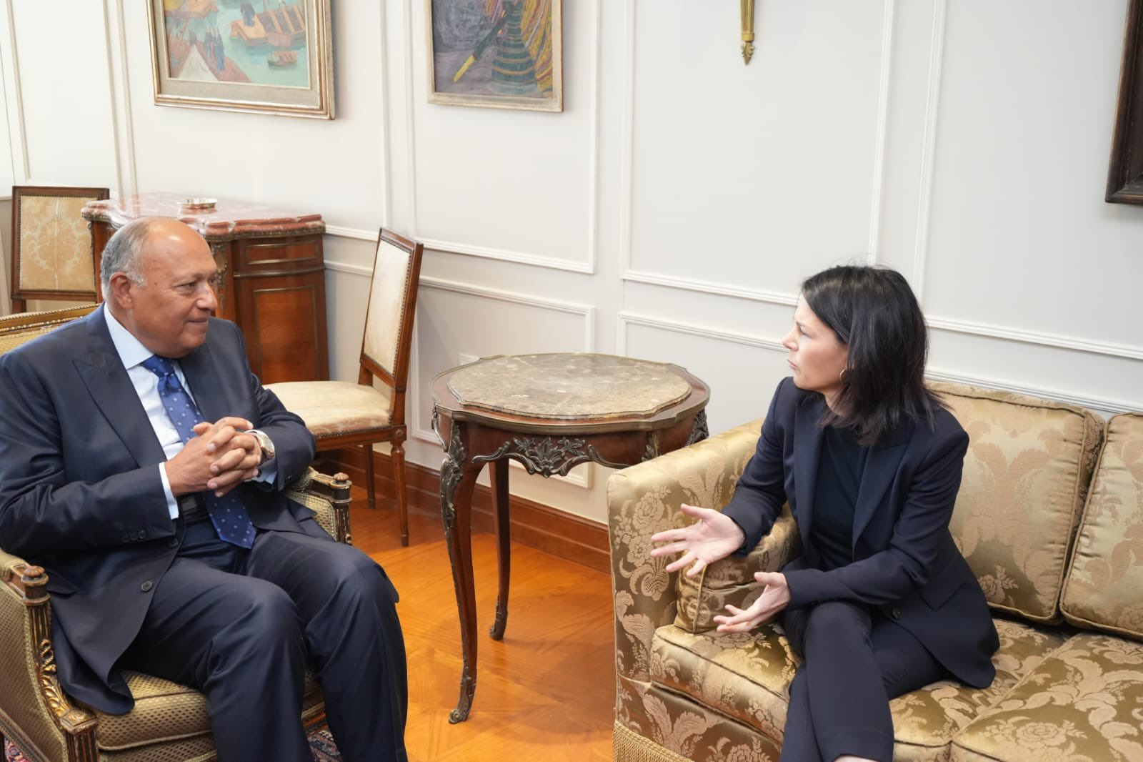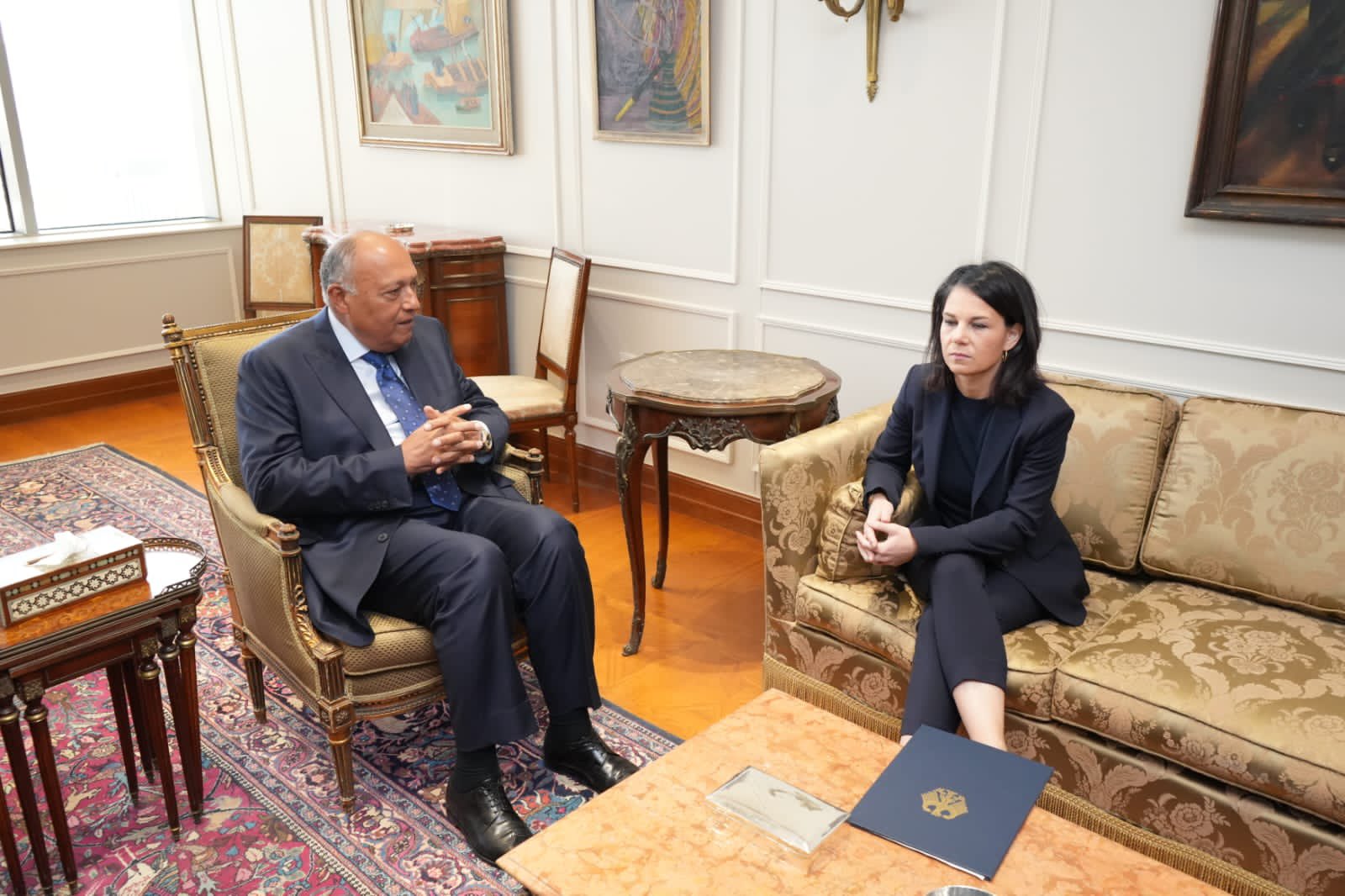 عقد وزير الخارجية سامح شكري مع نظيرته الألمانية أنالينا بيربوك جلسة مباحثات موسعة، في العاصمة الإدارية تناولت تردي الأوضاع في قطاع غزة، وتقييمات الجانبين حول حتمية وقف إطلاق النار، والإدخال الكامل والمستدام للمساعدات، وكذلك تطورات المشهد الإقليمي الراهن، وأمن الملاحة في البحر الأحمر.