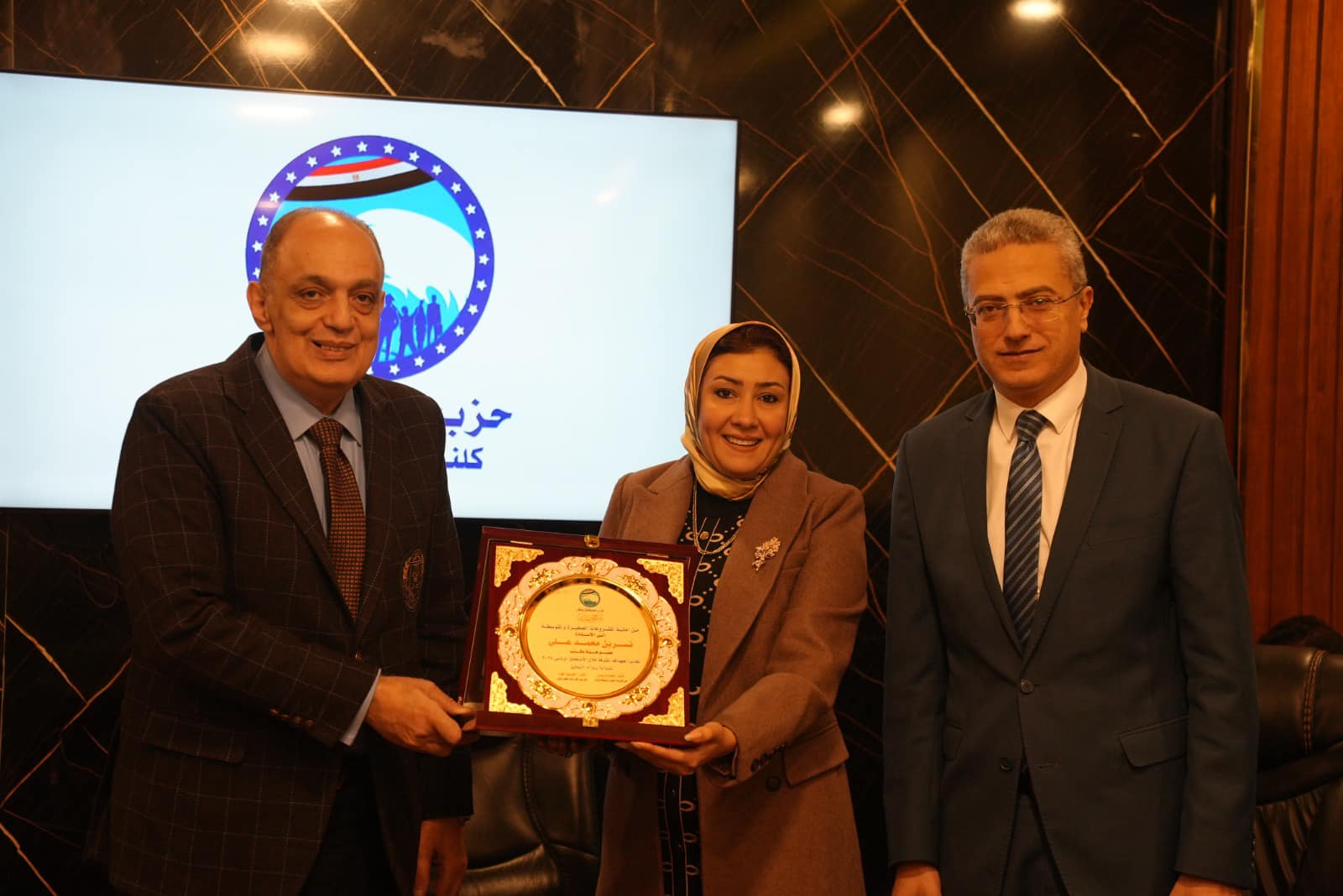 وخلال الاحتفالية، تم منح الأمناء المساعدين وأعضاء هيئة مكتب أمانة المهنيين المركزية، وأمناء المهنيين في المحافظات، دروع التكريم تقديراً لجهودهم خلال الاستحقاق الانتخابي.