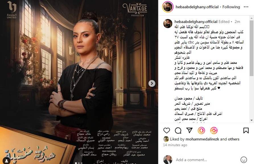 ونشرت هبة عبر حسابها الرسمي بموقع تبادل الصور والفيديوهات الشهير"انستجرام"، صورة بوستر مسلسل حدوتة منسية كاشفة عن موعد عرض المسلسل، وعلقت عليه وفقا لما رصده موقع تحيا مصر، قائلة : " كذب المنجمون ولو صدقو.. تعالو نشوف "هاله" هتعمل ايه في احداث حدوته منسية ان شاء الله يوم السبت ٢٧ يناير علي cbc الساعه ٨ م بطولة الاستاذه سوسن بدر و مجموعة كبيره جدا من الاخوات و الاصدقاء النجوم اللي بتبحبوهم ".