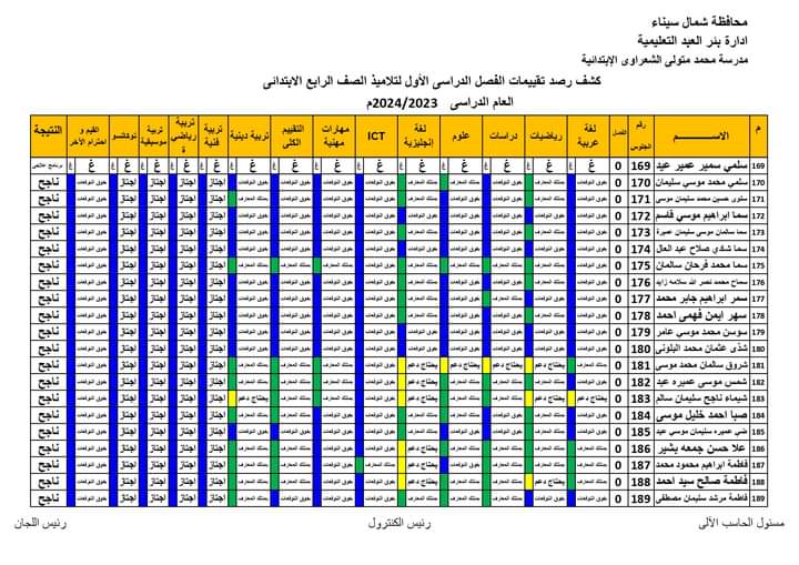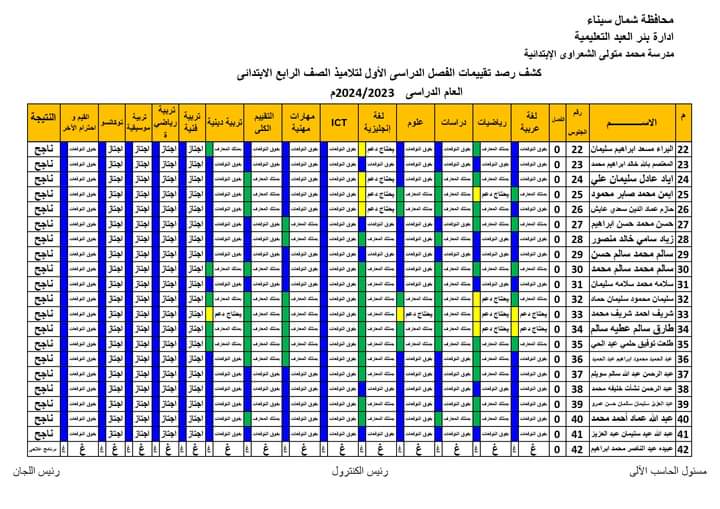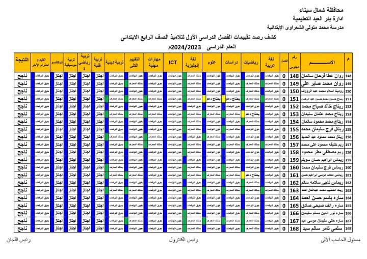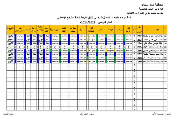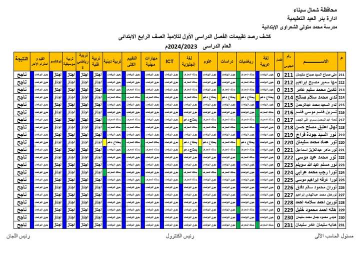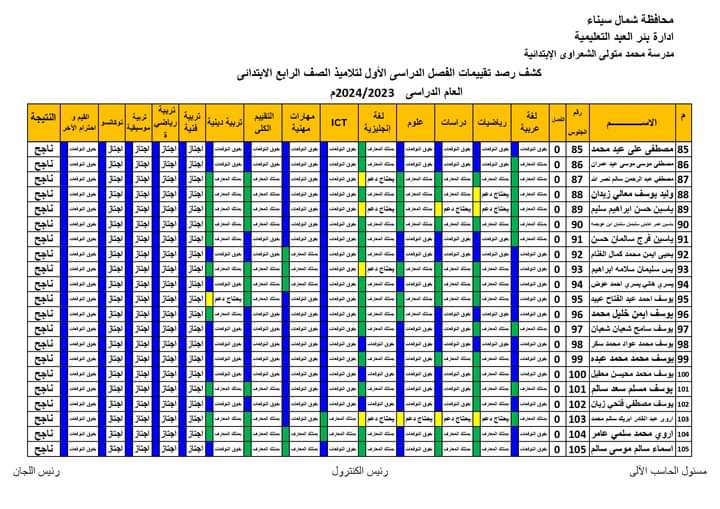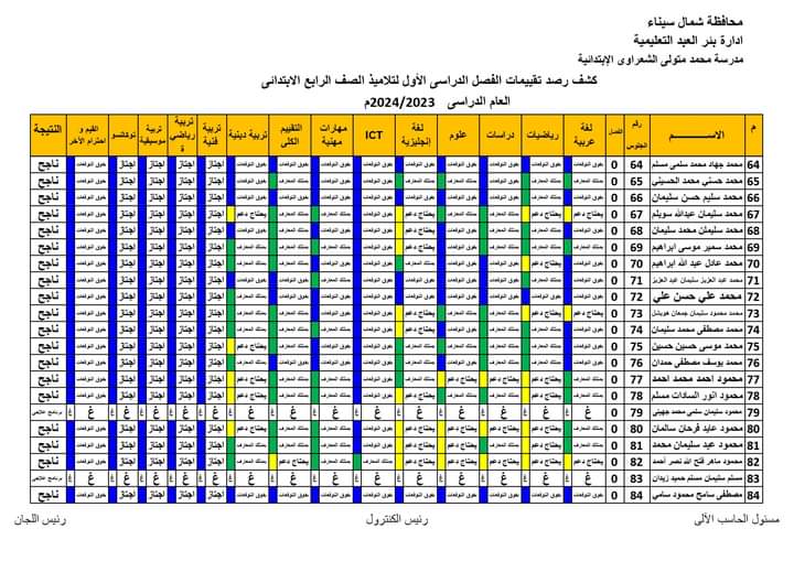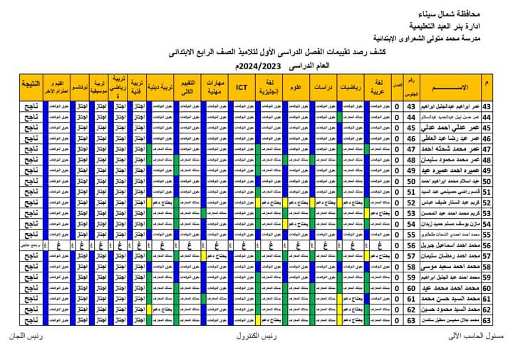 نشرت نتيجة الصف الرابع الإبتدائي 2024 الترم الأول على صفحات الفيس بوك للمدارس بالألوان حيث يعبر كل لون عن تقدير ومستوى كل طالب.