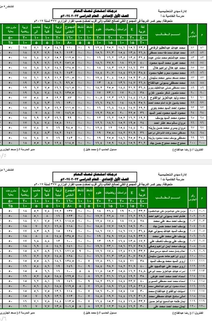 ظهرت نتيجة الصف الأول الإعدادي 2024 الفصل الدراسي الأول فى عدد من المحافظات بالمدارس حيث قامت بنشر كشوفات الأسماء بالدرجات على صفحات المدارس على الفيس بوك، وذلك بعد الانتهاء من أعمال التصحيح والمراجعة ورصد الدرجات لتعلن نتيجة الصف الأول الإعدادي 2024 الفصل الدراسي الأول وفقا للصوابط التى وجهت بها وزارة التربية والتعليم والتعليم الفنى.