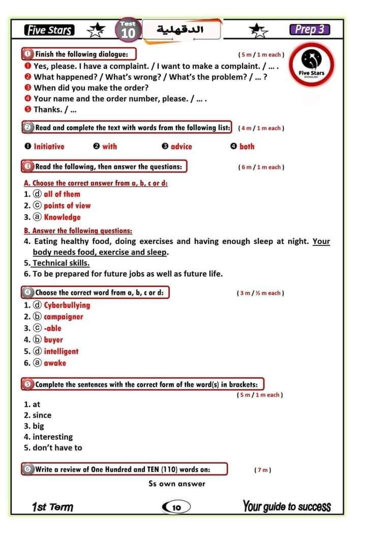 ننشر إجابات امتحان اللغة الإنجليزية للصف الثالث الإعدادي 2024 بالمحافظات