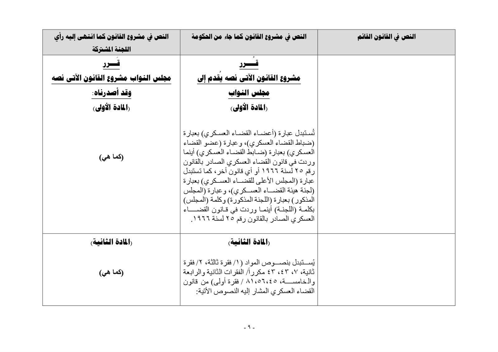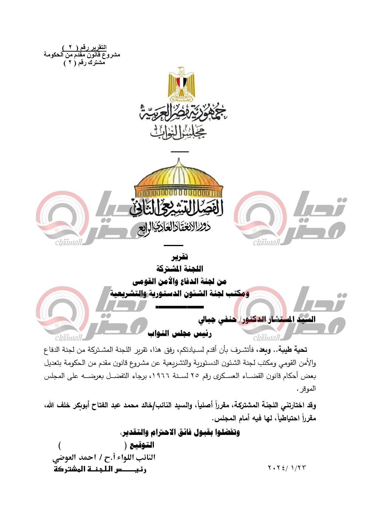 خاص تحيا مصر..نص تقرير البرلمان بشأن تعديلات الحكومة بقانون القضاء العسكرى ... مستند