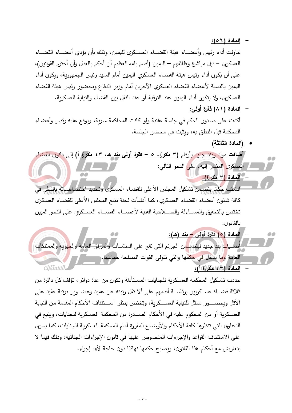 التعديلات الجديدة على قانون القضاء العسكرى ..خاص تحيا مصر