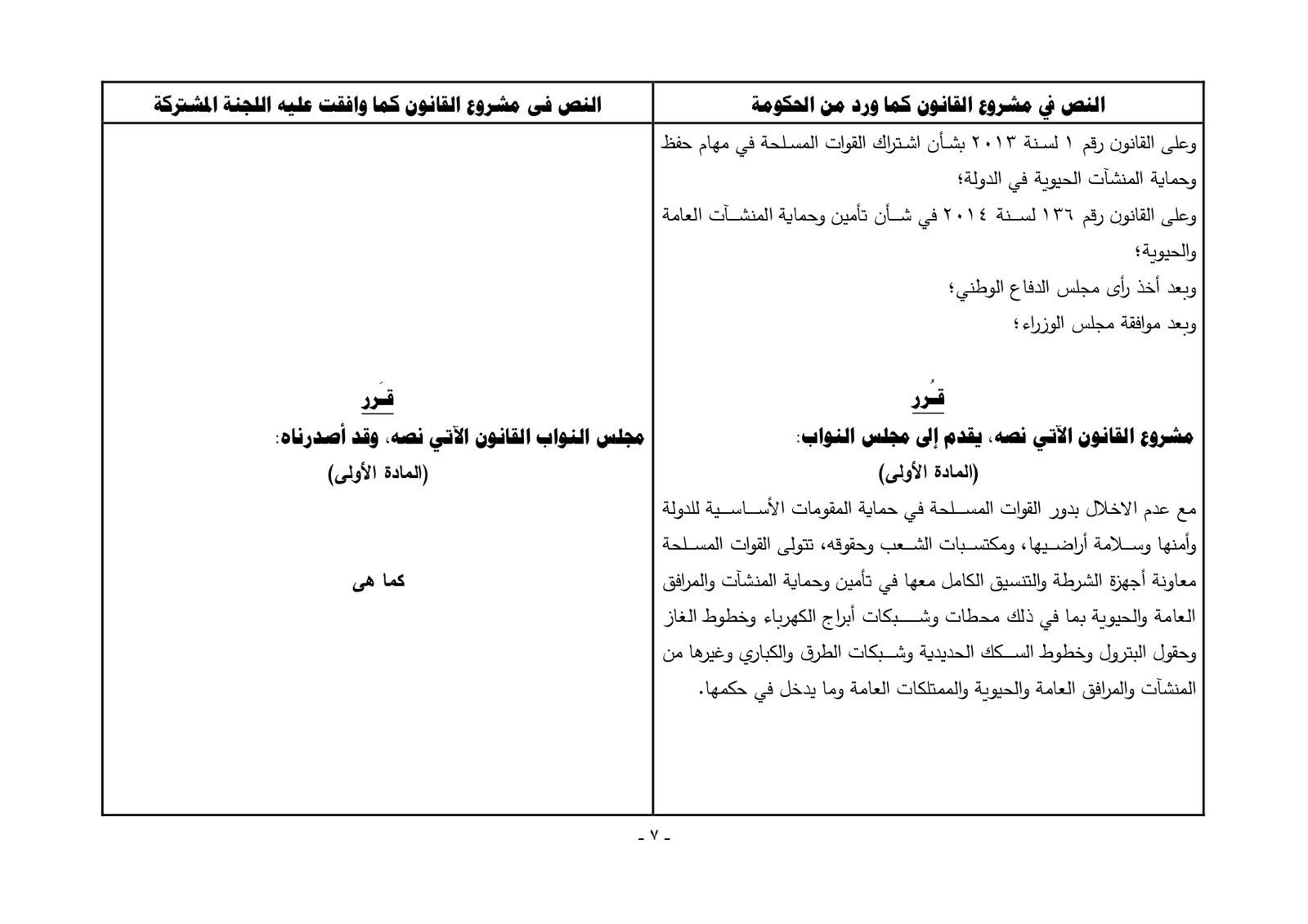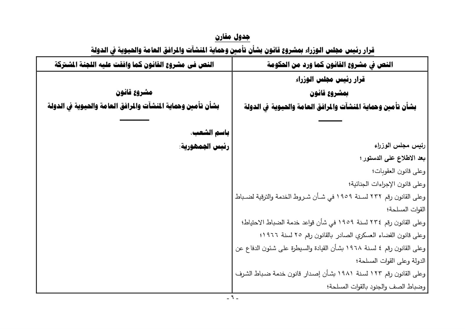 ضمن مشروع قانون حماية منشأت الدولة الحيوية