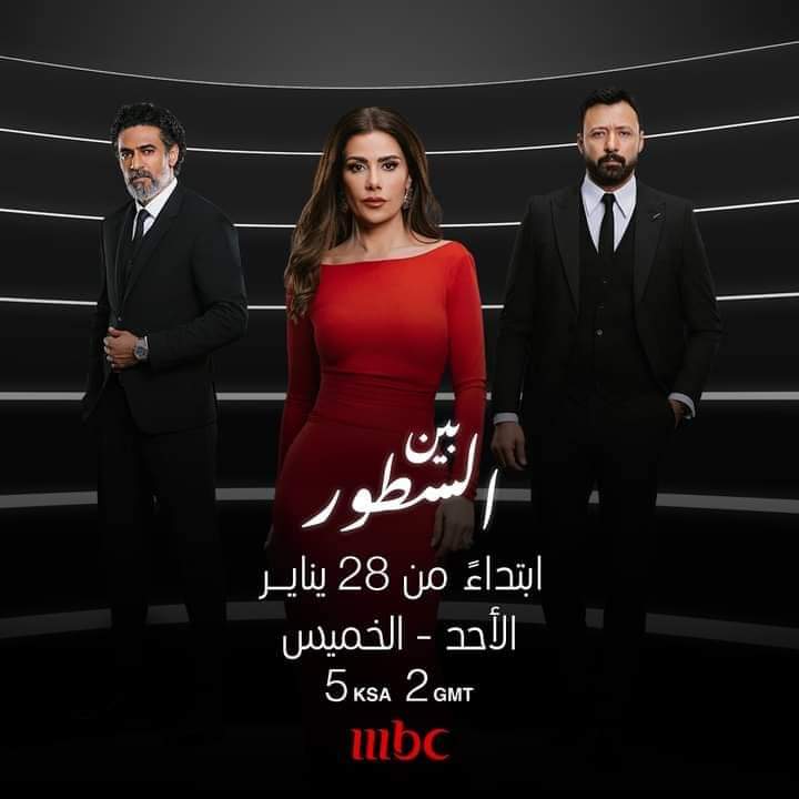 جدير بالذكر أنه يعرض مسلسل بين السطور يوميًا على قناة MBC الساعة 5 مساءً، وعلى قناة ON الساعة 8 مساءً، ويضم العمل عدد كبير من النجوم، ومن أبرزهم: صبا مبارك، سلمى أبو ضيف، أحمد فهمي، وعدد آخر من الفنانين، وهو من تأليف مريم نعوم وإخراج وائل فرج، وتدور أحداثه في إطار اجتماعي تشويقي.