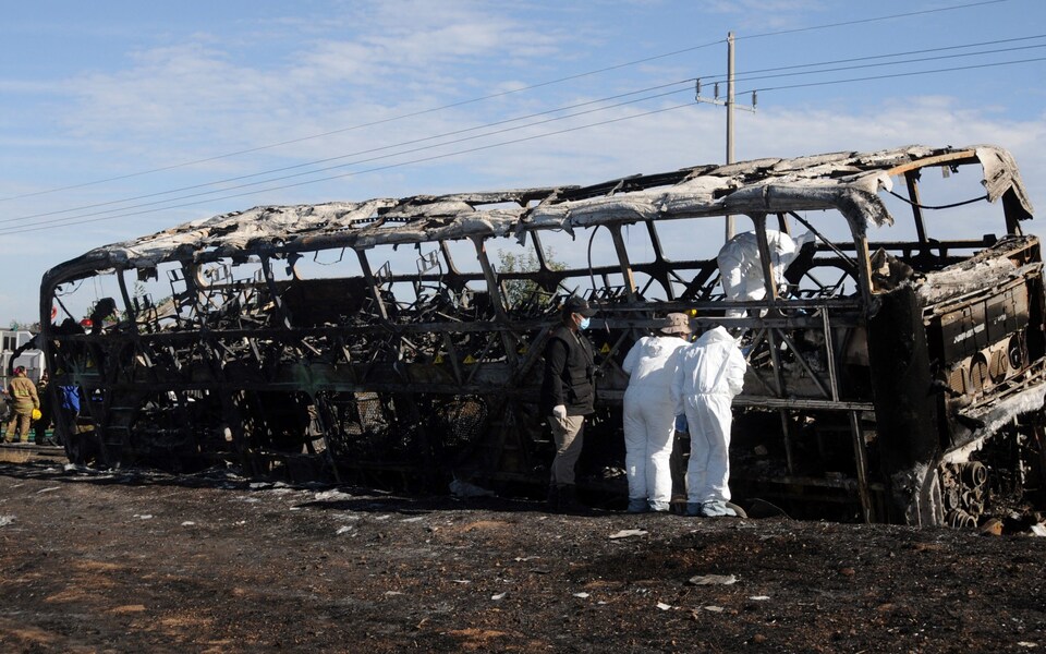 وقال روي نافاريتي، مدير الحماية المدنية في سينالوا، في مؤتمر صحفي، إن الشاحنة والحافلة - التي كانت تقل ما يقرب من 50 شخصًا - اصطدمتا وجهاً لوجه قبل أن تشتعل النيران فيهما.
