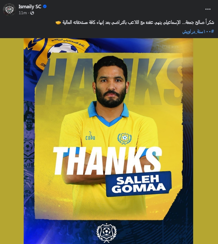 رسمياً.. الإسماعيلي يعلن فسخ عقد صالح جمعة بالتراضي
