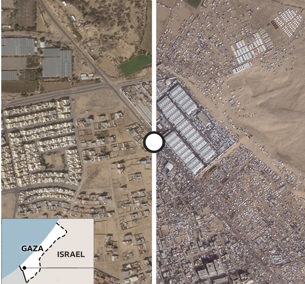 وتظهر صور الأقمار الصناعية التي تم التقاطها في 15 أكتوبر و14 يناير تغيراً جذرياً - فقد تحولت الآن تقريباً كل قطعة أرض غير مطورة يمكن الوصول إليها في منطقة شمال غرب رفح إلى ملجأ للنازحين.