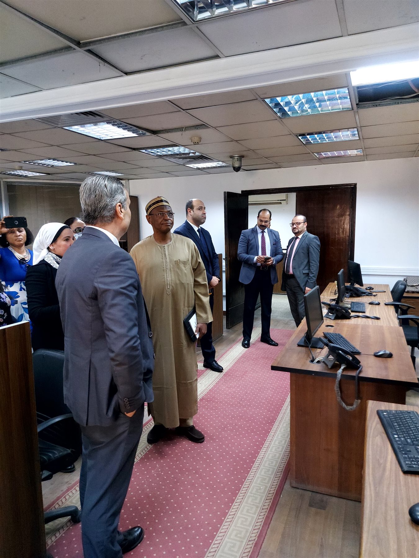 وقام السجيني ، بإصطحاب "ادامو عبد الحي " والوفد المرافق له لعمل جولة تفقدية بإدارات الجهاز المختلفة والتعرف علي طبيعة وكيفية عمل كل إدارة ، وأثناء الجولة.