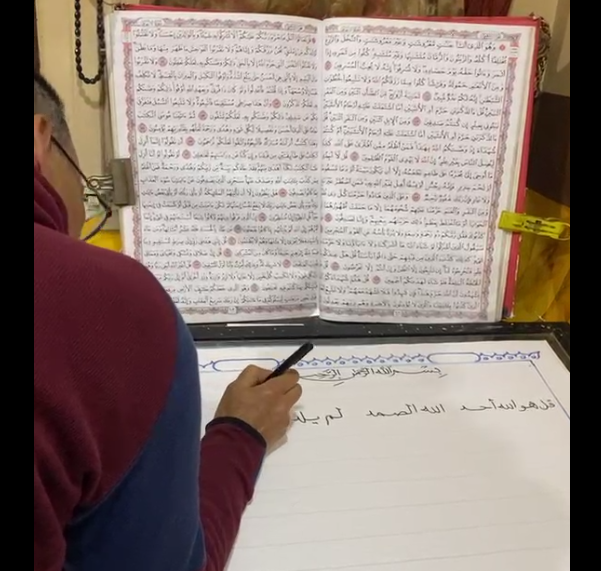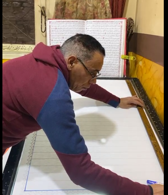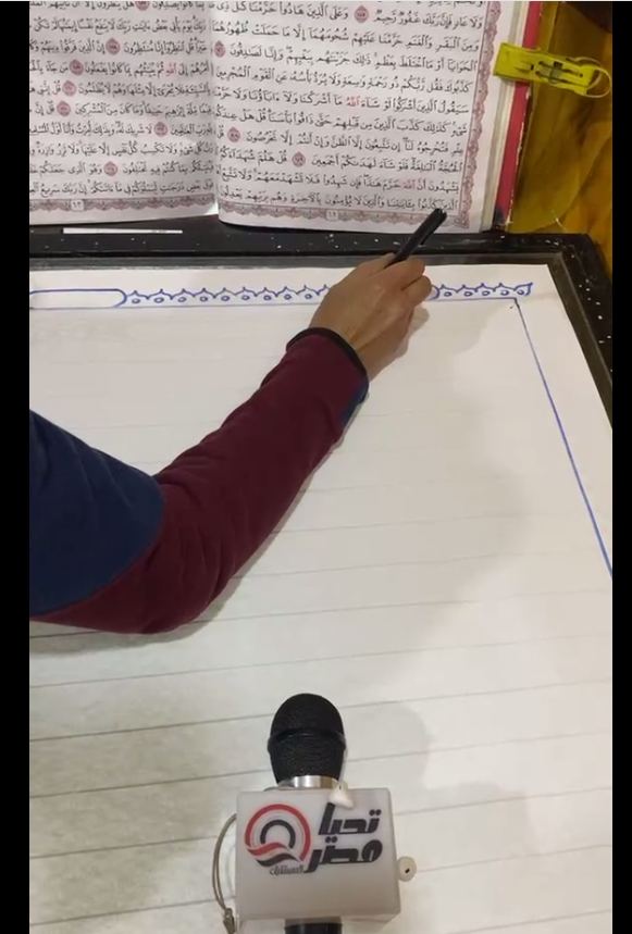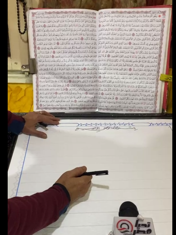 استطاع معلم يدعى حمدي أمين البحراوي 59 سنة من محافظة الدقهلية، أن يدون القرآن الكريم بخط يده خلال عامين ونصف وذلك عن طريق خط يده.