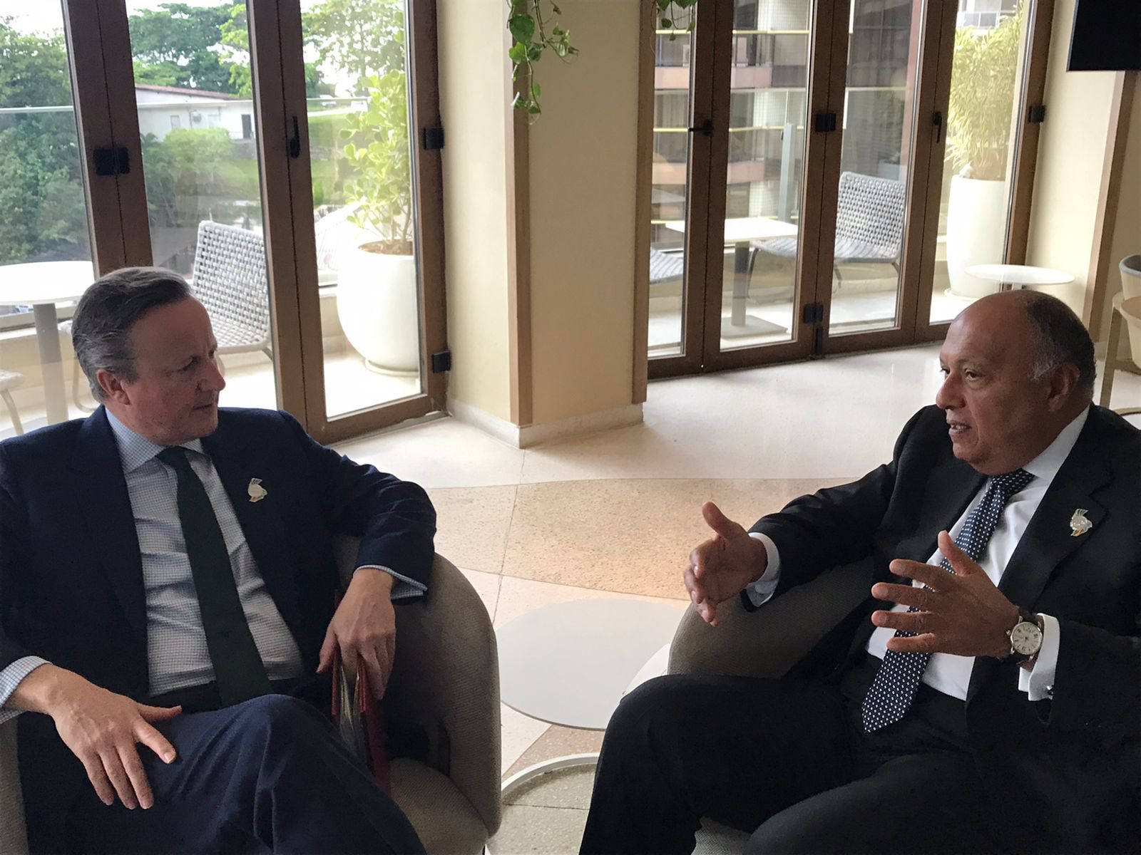 التقى سامح شكري وزير الخارجية، يوم الخميس بنظيره البريطاني ديفيد كاميرون ، وذلك على هامش اجتماعات وزراء خارجية دول مجموعة العشرين التي تنعقد في مدينة ريو دي جانيرو البرازيلية خلال يومي ٢١ و٢٢ فبراير الجاري.