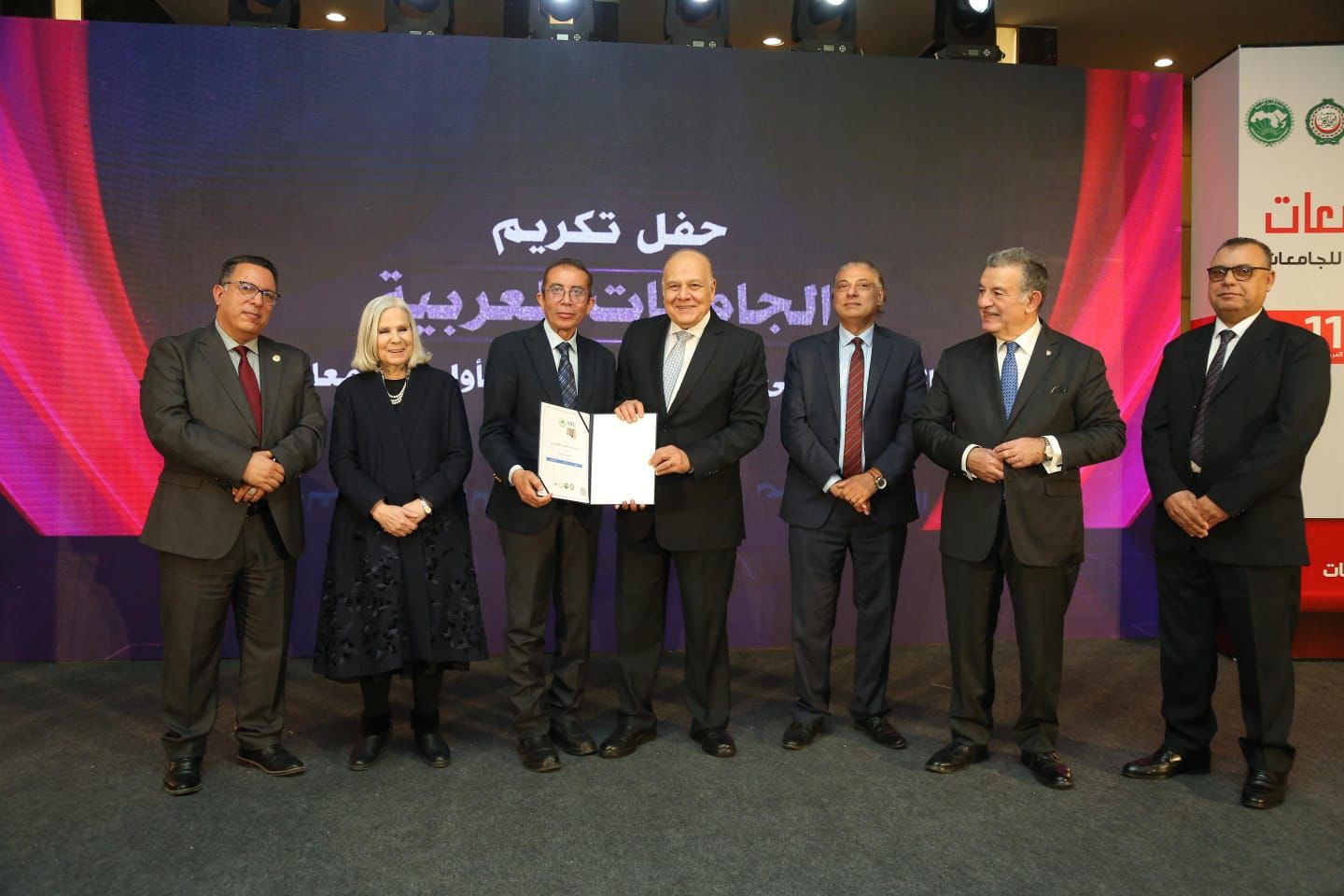 رئيس جامعة مصر للعلوم والتكنولوجيا يتسلم شهادة نجاح الجامعة فى النسخة الأولى من التصنيف العربى للجامعات