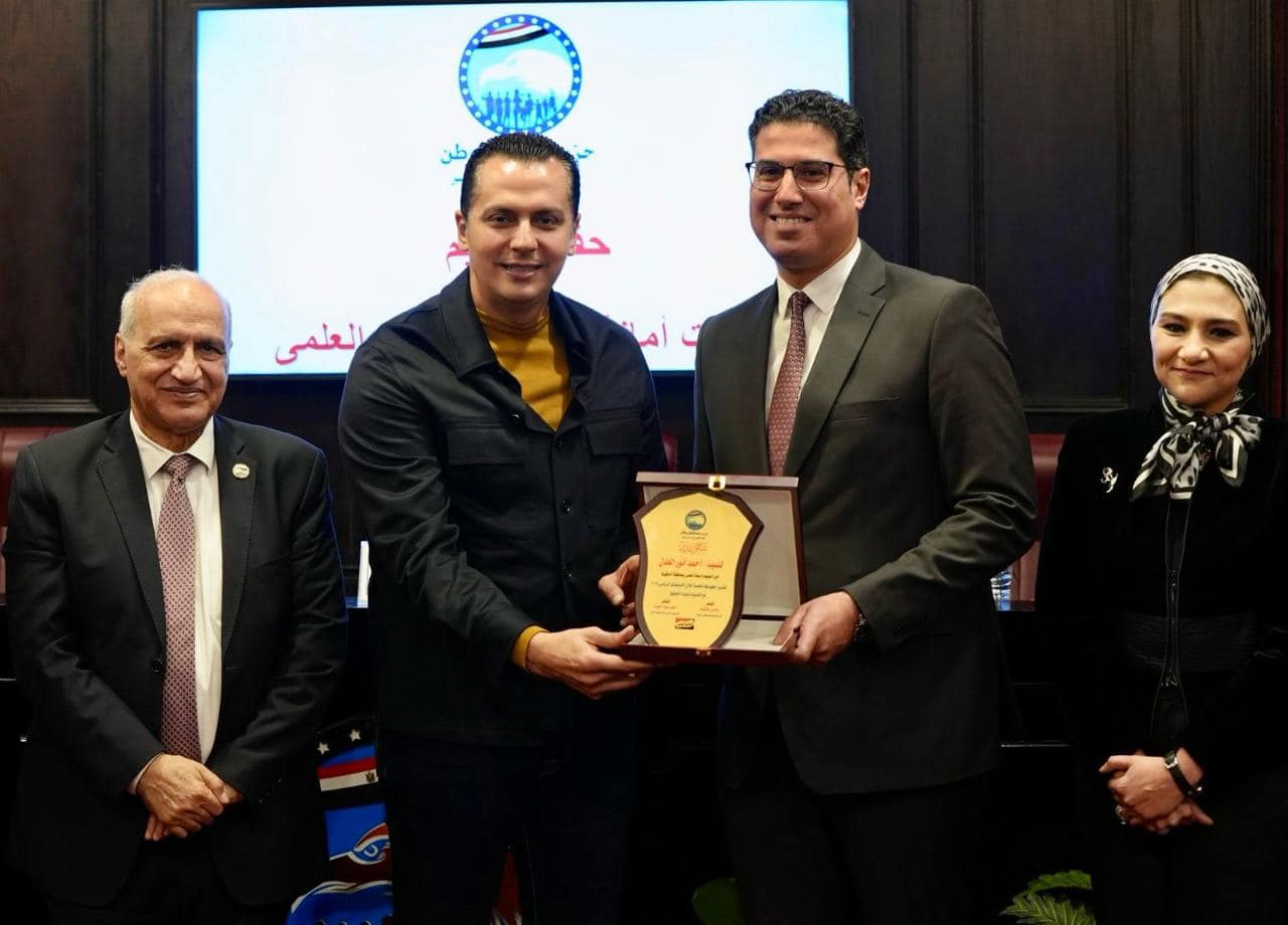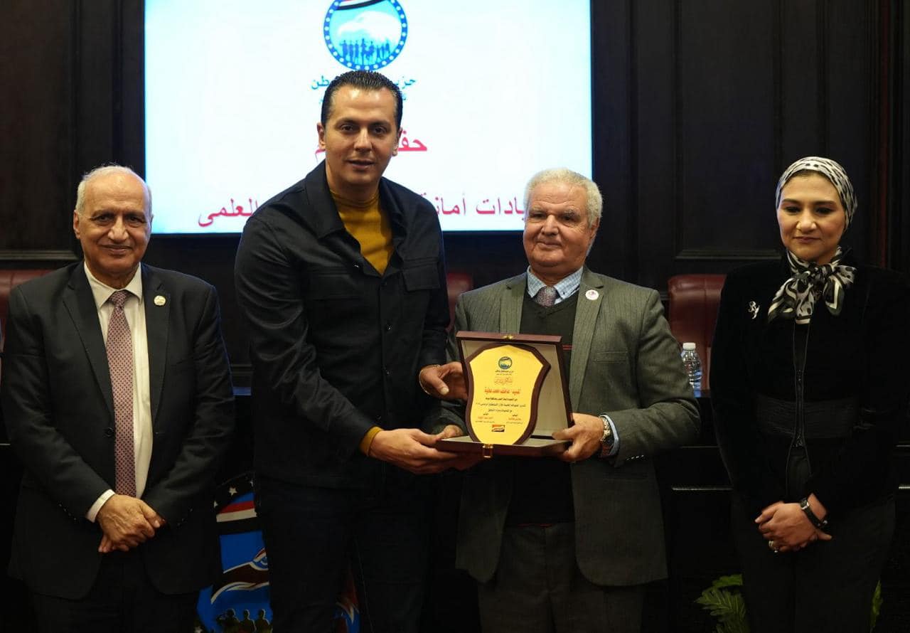 الدكتور سامي هاشم يقدم درع الأمانة للنائب أحمد عبد الجواد تقديرا لدوره البارز والمشرف في تنظيم وتوجيه الحزب