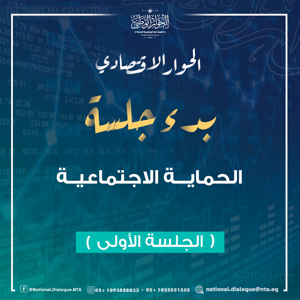 بدء جلسة متخصصة بعنوان"الحماية الاجتماعية" ضمن جلسات الحوار الوطني الاقتصادي، بمقر الأكاديمية الوطنية للتدريب، بحضور الدكتورة نيفين القباج وزيرة التضامن الاجتماعي.
