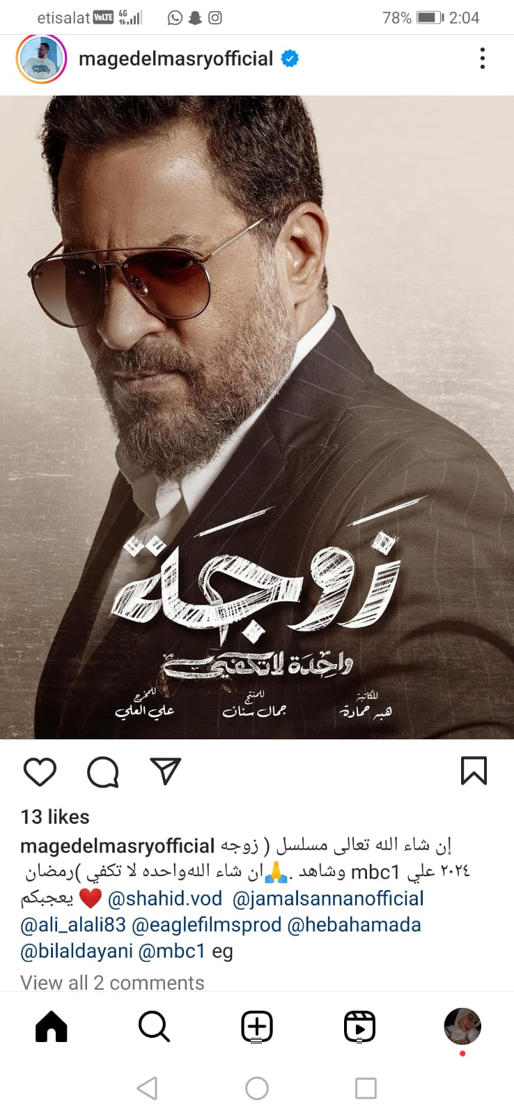 يخوض الفنان ماجد المصري سباق مسلسلات رمضان 2024 من خلال المسلسل الخليجي زوجة واحدة لا تكفي، والذي من المقرر عرضه عبر شاشة قناة mbc1، ومنصة شاهد الرقمية.