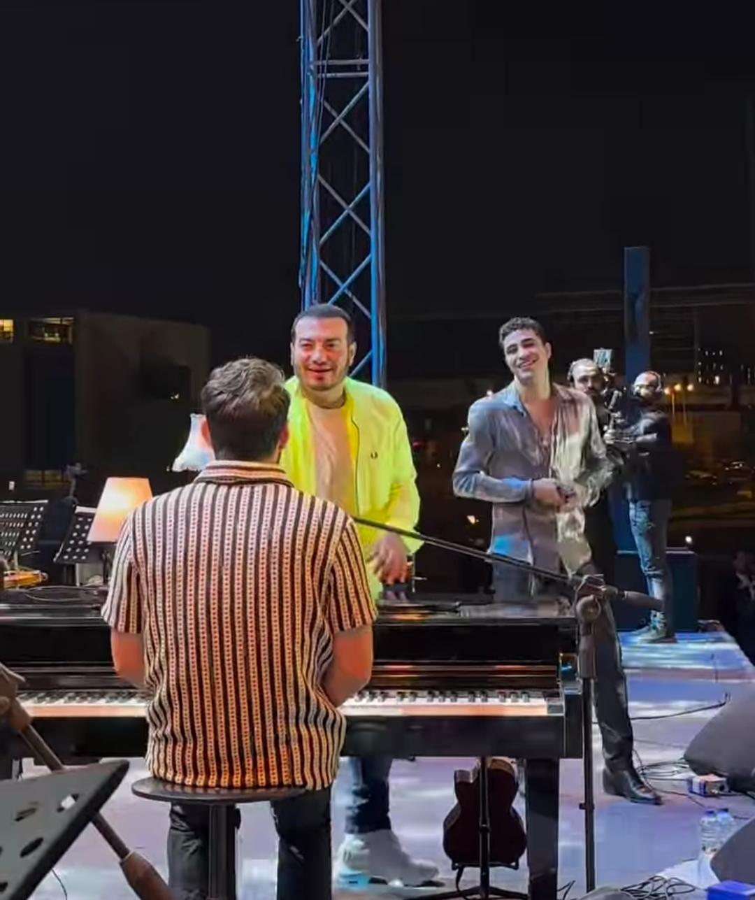 وشارك عزيز مرقة مقطع فيديو أثناء غنائهما من الحفل عبر حسابه الرسمي على موقع تبادل الصور والفيديوهات انستجرام وعلق: "الله عليك يا سيدي مع الفنان إيهاب توفيق، وعلى الهارمونيكا عمر شريف".