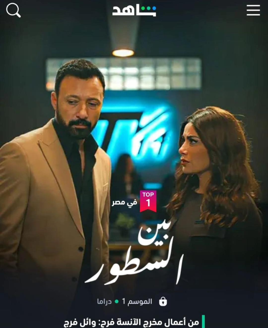 مسلسل بين السطور يتصدر قائمة الأعلى مشاهدة على منصة شاهد