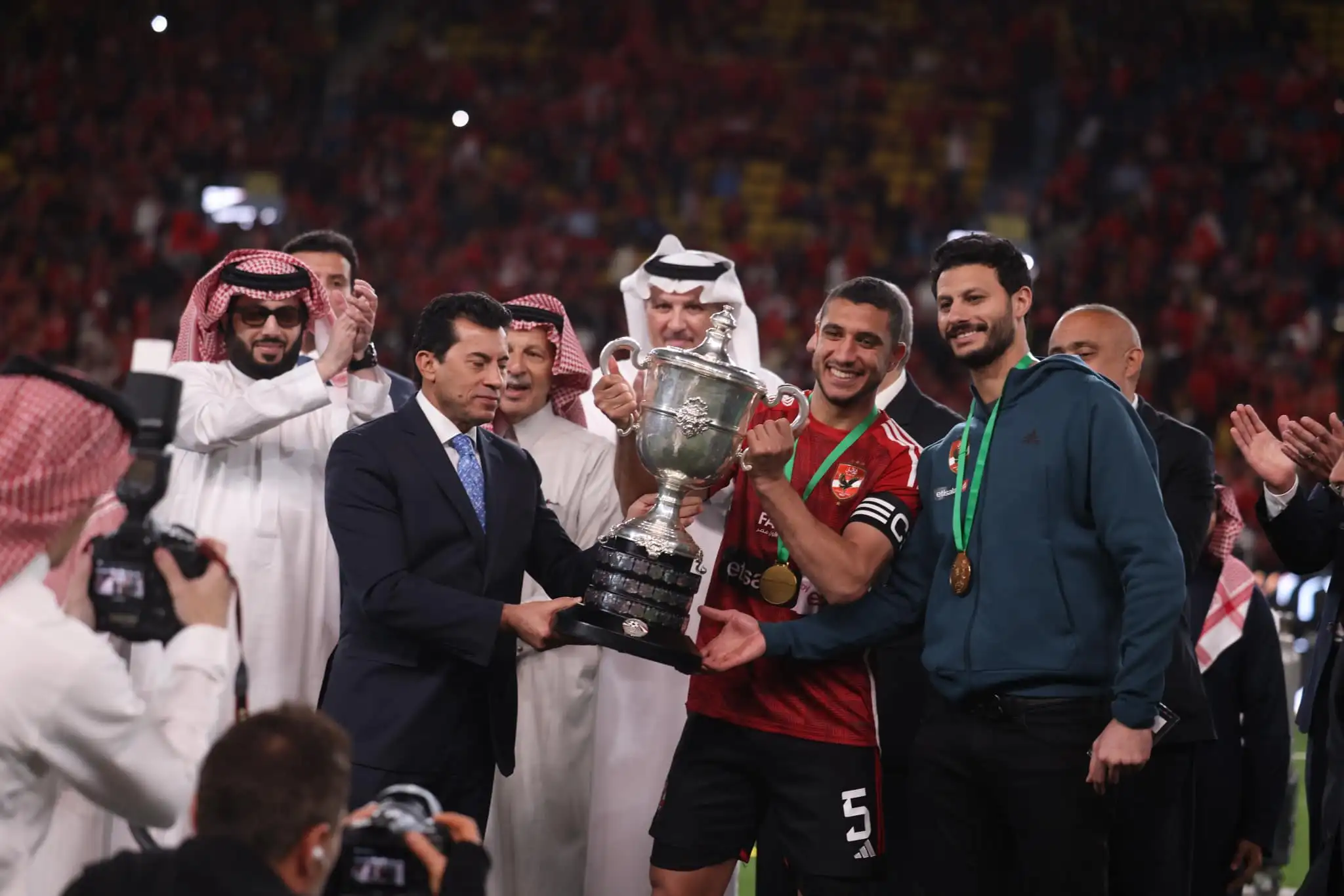 ولم يكن الجمهور غائبًا عن هذا الحدث، بل كان هو المتنفس الحقيقي لمتعة كرة القدم. فقد زينت جماهير القلعة الحمراء والبيضاء مدرجات استاد الأول بارك، وامتزجت مع الجماهير المصرية والسعودية في مشهد رائع عكس شغف الجماهير العربية بكرة القدم وحبهم للعبة الشعبية الأولى.