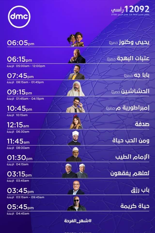 وتأتي مواعيد عرض مسلسلات رمضان على قناة دي إم سي كما رصدها موقع تحيا مصر، كالآتي: