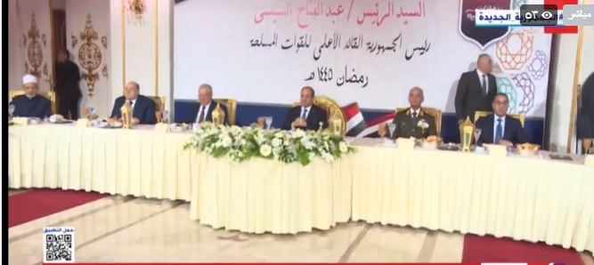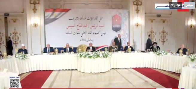شارك الرئيس عبد الفتاح السيسي، قادة القوات المسلحة حفل الإفطار السنوي بمناسبة ذكرى العاشر من رمضان.