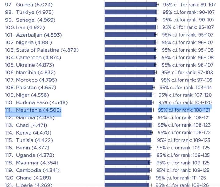 حيث اعتمد هذا التصنيف على مردود الفرد والدعم الاجتماعي والحياة الصحية والحرية والفساد في البلد.