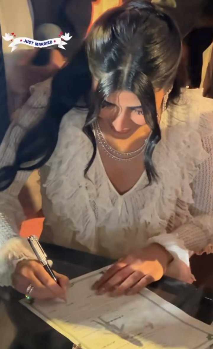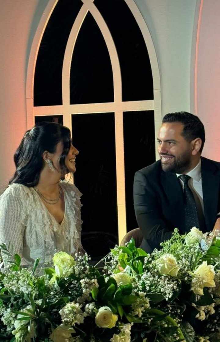 وشاركت ريم سامي لقطات من حفل عقد قرانها على محمد المغازي، وذلك على حسابها الرسمي بموقع تبادل الصور والفيديوهات انستجرام من خلال خاصية ستوري ورصدها موقع تحيا مصر، حيث ظهرت الفنانة بفستان أبيض سادة بكرانيش وصك، بينما ظهر زوجها ببدلة سوداء وقميص أبيض، وظهر شقيقها محمد سامي خلف ظهرها وكأنه يقدم لهم الدعم والسند.