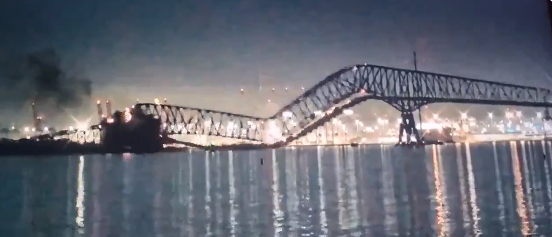 انتشر مقطع فيديو يوثق لحظة انهيار جسر في مدينة بالتيمور في ولاية ميريلاند الأمريكية، وذلك بعد اصطدام سفينة به، فيما وصف هذا الحادث من قبل السلطات المحلية بأنه “ضخم”