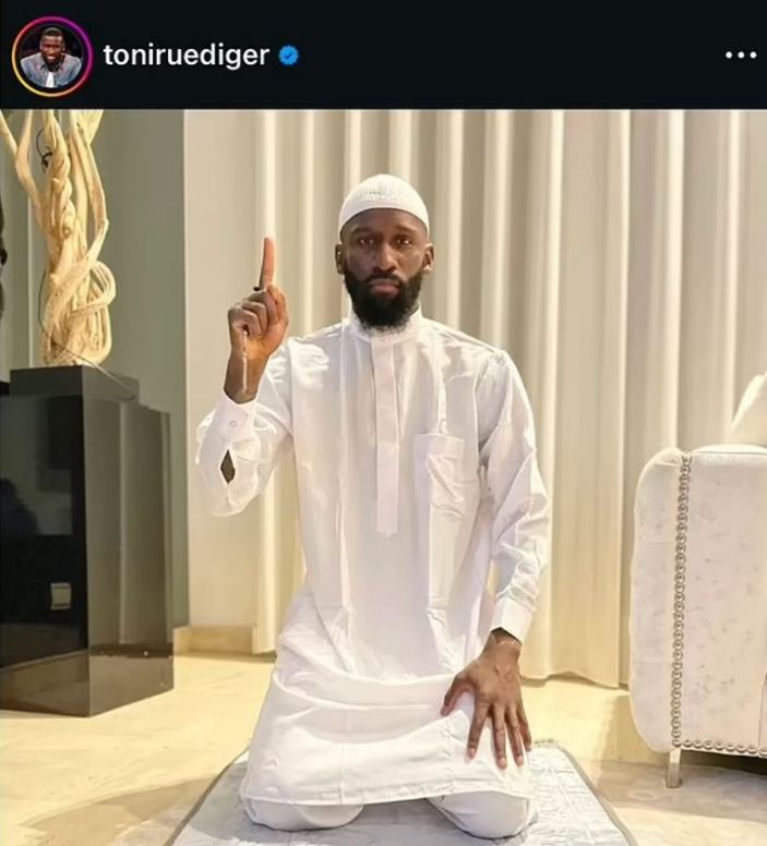 وقد نشر أنطونيو روديجير صورة له عبر موقع التواصل الإجتماعي "إنستجرام"، وهو يرتدى رداء أبيض ويرفع أصبعه السبابة للسماء معلقًا عليها، "رمضان مبارك لجميع المسلمين في جميع أنحاء العالم، تقبل الله منا الصلاة والصيام".