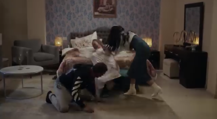 وانتقل المشهد إلى عرب السويركي، حيث يخبر أنغام بالذهاب إلى منزلها وبمجرد خروجها من الغرفة يخرج كيس بودرة ولكن تدخل عليه أنغام مرة أخرى وتتشاجر معه فيقوم بضربها وتنقذها والدته حيث يتعدى عليها بالضرب هي الأخرى بعدما منعته من المخدرات، فيدخل في حالة من الصدمة والبكاء وفي مشهد مؤثر بينه وبين والدته يقول: "سامحيني ياما تتقطع ايدي قبل ما تتمد عليكي.. هدوني ياما هدوا عرب السويركي، كسروني ياما وصحتي راحت وسرقوا عفيتي".