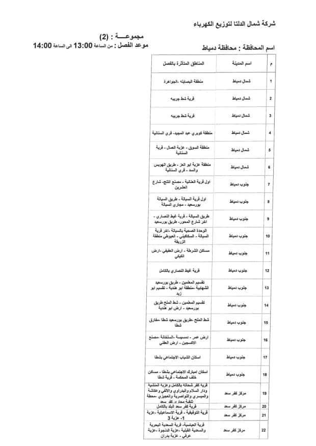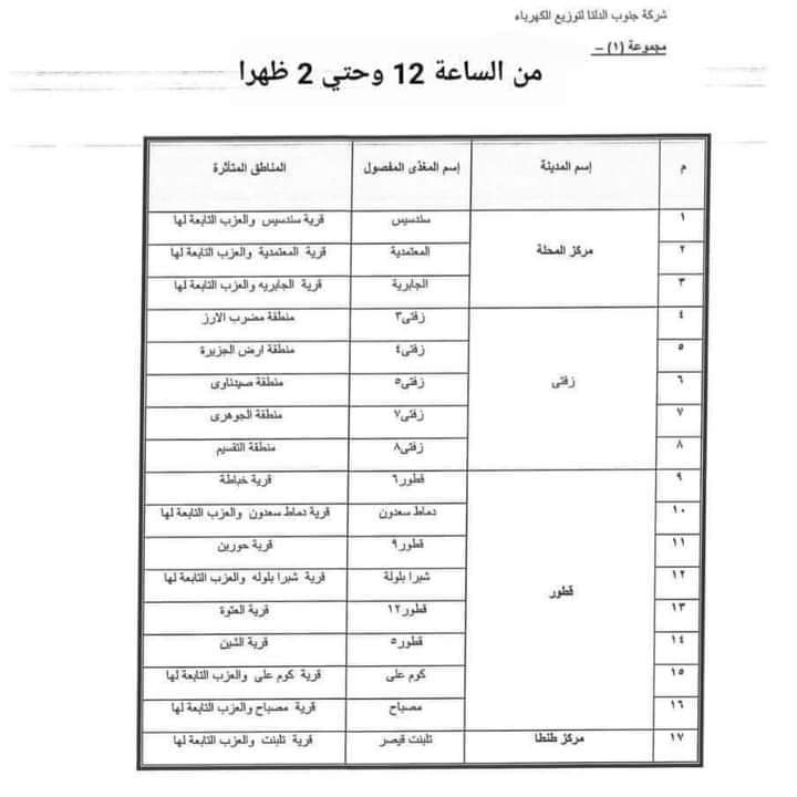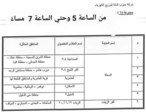 من المقرر أن تكون مواعيد قطع الكهرباء بدءا من الإثنين اليوم بدءا من الساعة 11 صباحًا حتى الساعة 5 مساءاً ، بمعدل ساعتين لكل مجموعة بعد العيد مباشرة هذه المواعيد هي نفسها التي كانت مطبقة قبل شهر رمضان.