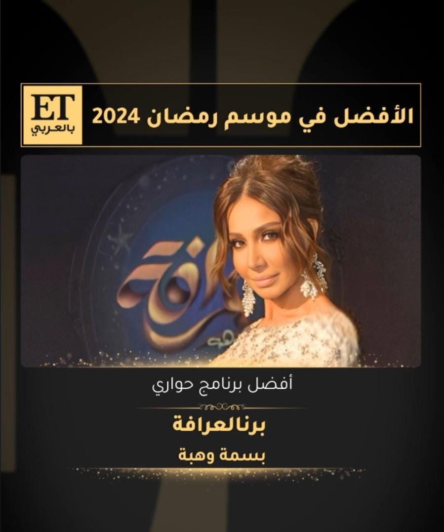 حصد برنامج العرافة والذي تقدمه الإعلامية بسمة هبة على لقب أقضل برنامج حواري في الموسم الرمضاني 2024، وذلك ضمن استفتاء الجمهور في اختيار الأفضل والذي طرحه برنامج et بالعربي، ليكون العرافة هو الاختيار الاول والأخير للجمهور.