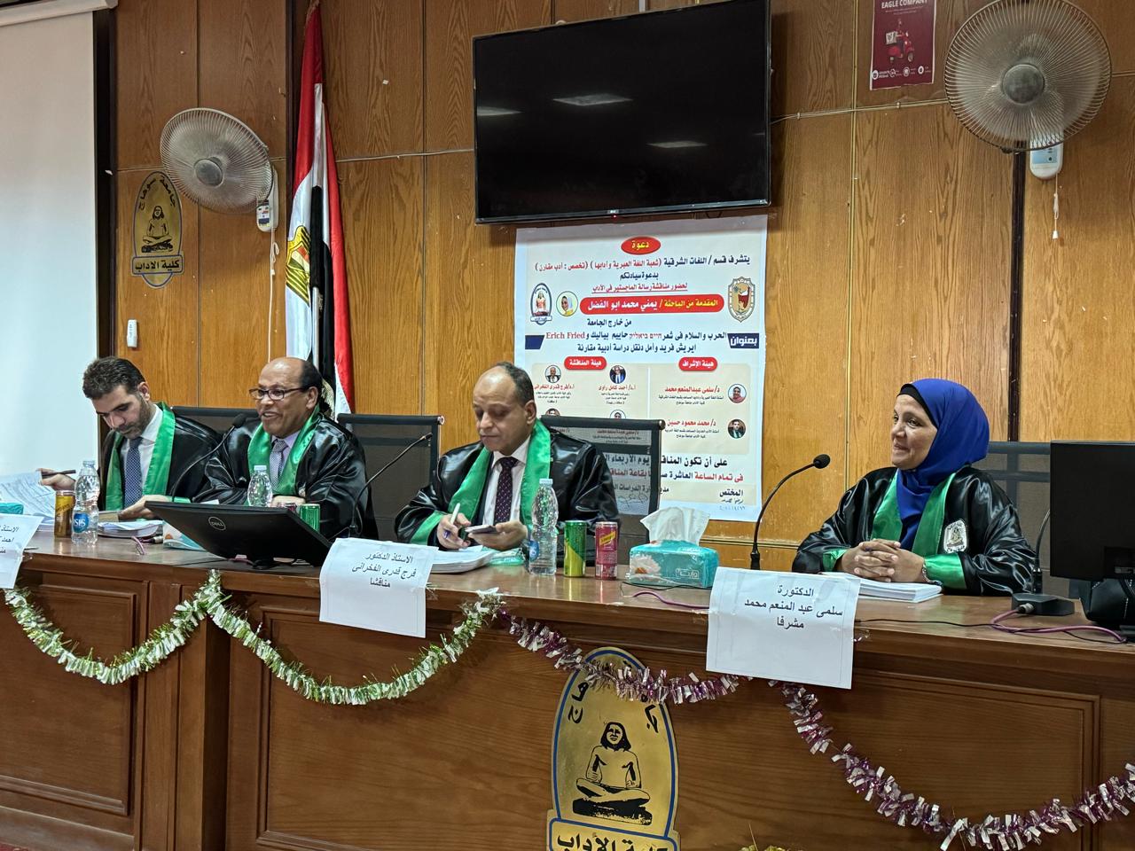 تكونت لجنة الإشراف والمناقشة من الدكاترة: أحمد كامل راوي رئيس قسم اللغة العبرية وآدابها بآداب حلوان، و فرج قدري الفخراني وكيل كلية آداب جامعة جنوب الوادي و سلمي عبد المنعم محمد أستاذ اللغة العبرية المساعد بآداب سوهاج،و محمد محمود حسين أستاذ الأدب الحديث المساعد بآداب سوهاج.