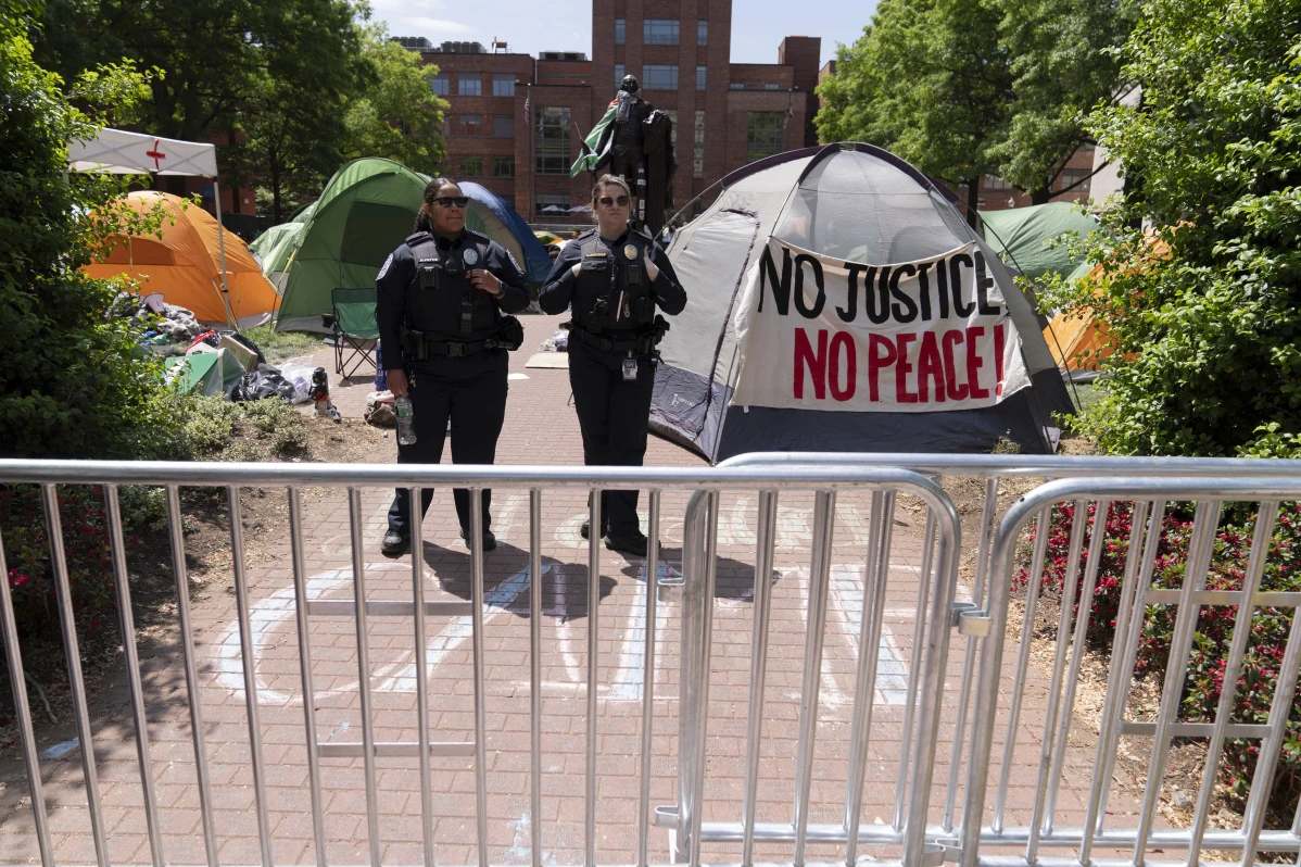 أقام حوالي 50 طالبا في جامعة جورج واشنطن في واشنطن العاصمة، خيمة في ساحة الجامعة بالجامعة يوم الخميس.و نظمت مجموعة من طلاب وأساتذة جامعة جورج تاون إضرابًا احتجاجيًا خاصًا بهم وساروا إلى حرم جامعة جورج واشنطن للانضمام إليهم.