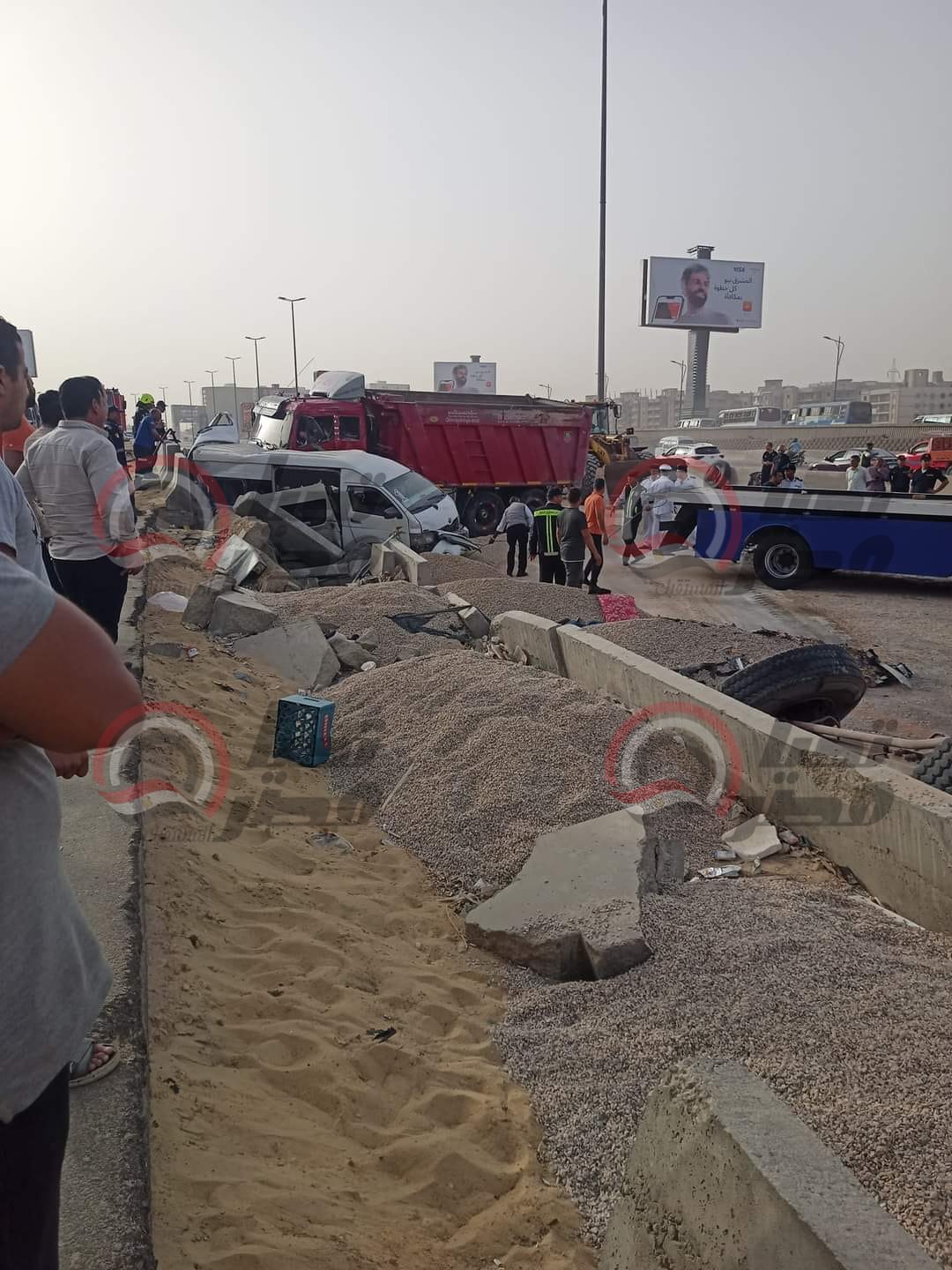 حيث كشفت المعاينة التي أجرتها أجهزة أمن القاهرة، وقوع حادث تصادم بين سيارة نقل محملة بالرمال وأخرى ملاكي وميكروباص، وذلك بعد اصطدامهم في منطقة حادث كانت الأجهزة الأمنية في القاهرة تعمل على رفع حطام الحادث، حيث تهشمت السيارة الملاكي تماما مما أسفر عنه مصرع ٤ أشخاص في الحادث وإصابة عدد أخر تم نقلهم للمستشفيات لتلقي العلاج اللازم.