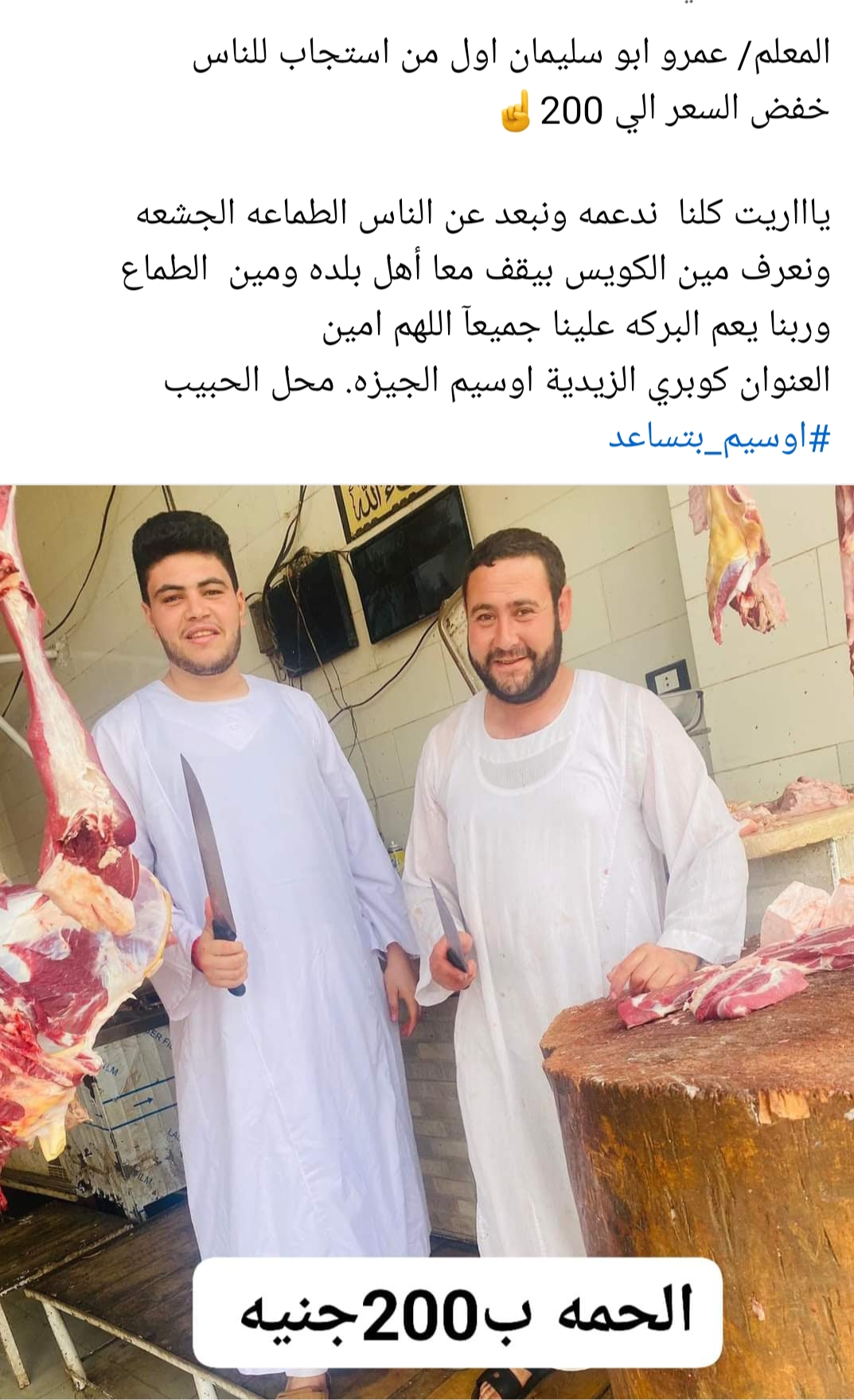 جزارين اوسيم والبراجيل يطلقون مبادرة بتخفيض اسعار اللحوم.. الكيلو يصل إلى 200 جنيه