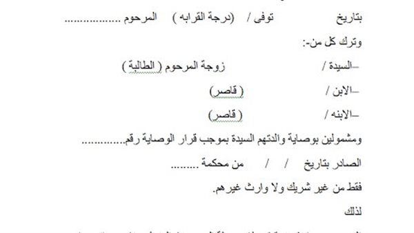 2) شهادة وفاة الجد للأب أو شهادة أحد الأعمام بوفاة الجد (فى حالة اذا كانت الأم هى طالبة الوصية)