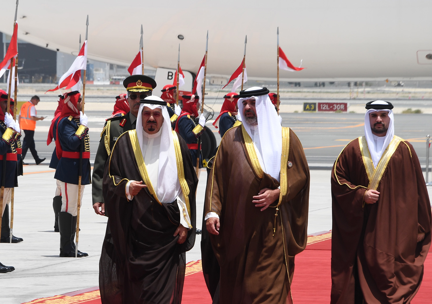 وذكرت الأنباء الكويتية “كونا” أن كان في استقباله على ارض المطار الشيخ عبدالله بن حمد آل خليفة الممثل الشخصي لملك مملكة البحرين والشيخ عيسى بن عبدالله بن حمد آل خليفة والأمين العام المساعد لجامعة الدول العربية أحمد رشيد خطابي وسعادة سفير دولة الكويت لدى مملكة البحرين الشيخ ثامر جابر الأحمد الصباح ورئيس بعثة الشرف المرافقة لسفير مملكة البحرين لدى دولة الكويت صالح علي المالكي.
