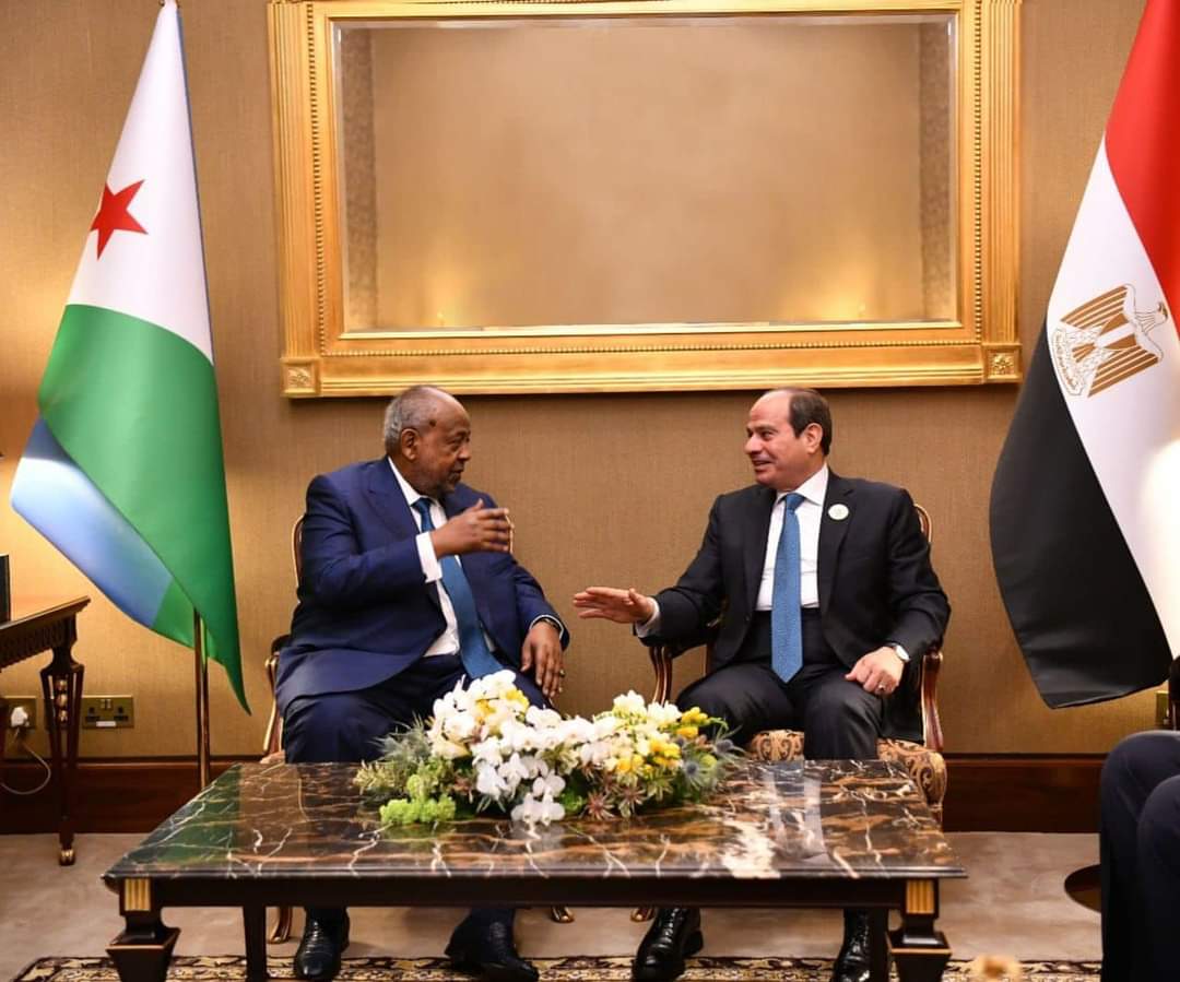 الرئيس السيسي و نظيره الجيبوتي يؤكدان ضرورة وقف الحرب بغزة واستعادة الهدوء في مضيق باب المندب