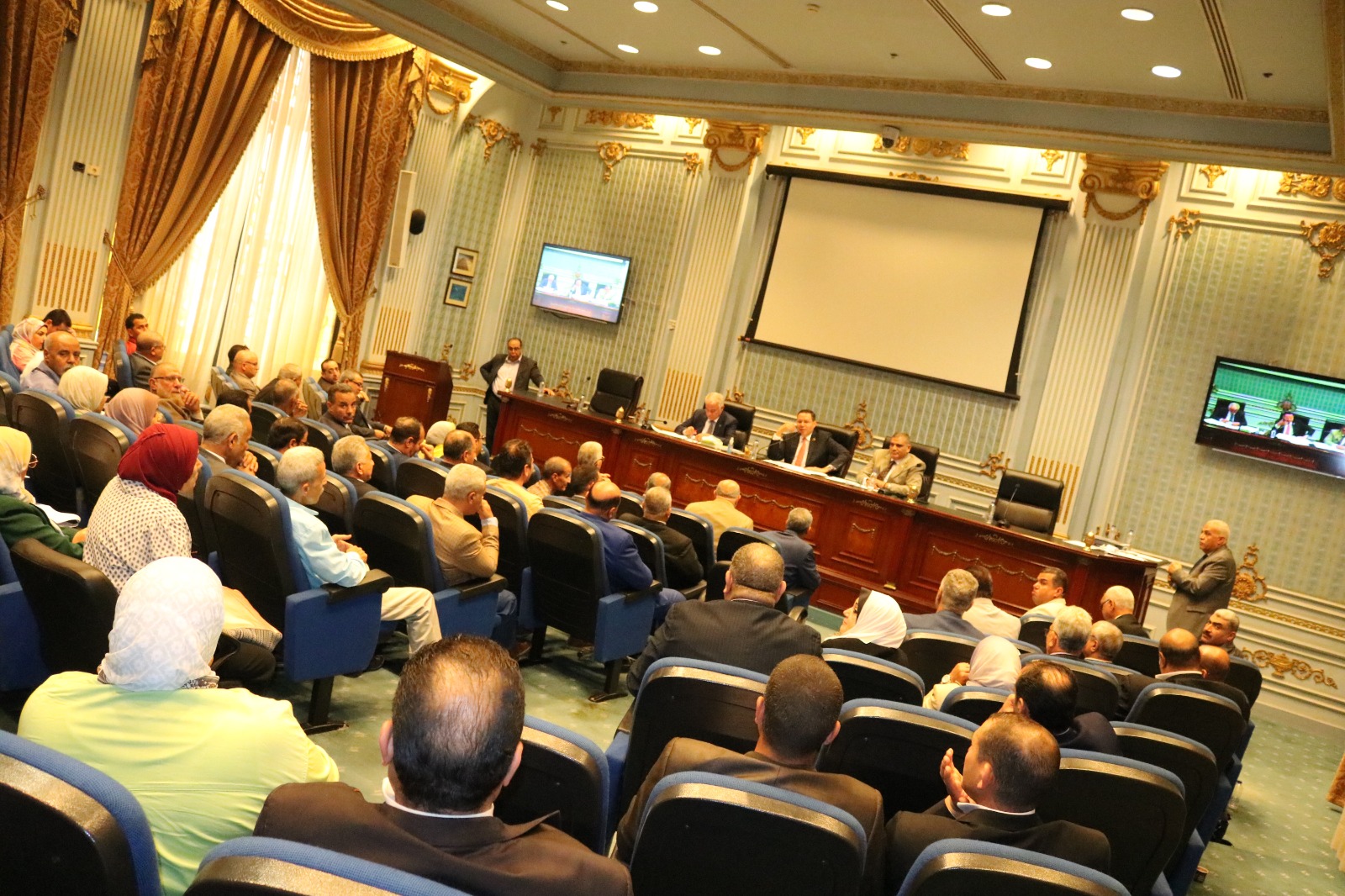 وأعلن النائب هشام الحصرى رئيس اللجنة، تأييده الكامل لطلبات الهيئة والمديريات، منتقدا السكوت علي تلك الطلبات لسنوات عديدة، قائلا،: ذلك يمثل إهدار للوقت والجهد، وعدم تحقيق نتيجة.وأضاف الحصرى، أن تلك الجهات عليها دور هام في تحقيق الأمن الغذائي، ولابد من توفير احتياجاتها حتى تتمكن من القيام بدورها. واقترح الحصرى، تخصيص جزء من الرسوم والموارد المالية التى يمكن زيادتها بتلك الجهات، لتعيين أطباء بيطريين لسد العجز في عددهم. وقال الحصرى، هناك حلول عديدة يمكننا أن نطبقها لتوفير الموارد المالية لحل المشكلة، ولكن لايجوز الاستمرار هكذا. وتابع،: معنا رئيس دولة عاوز يجرى في كافة القطاعات بأقصى سرعة.. ومثل هذه الجهات لاتساعده.. والنتيجة ايه؟