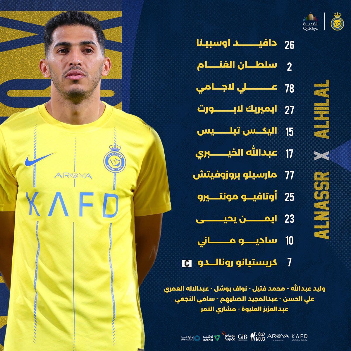 تشكيل النصر لمواجهة الهلال في دوري روشن السعودي