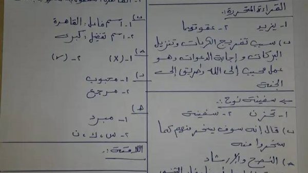 إجابات امتحانات اللغة العربية للشهادة الإعدادية 2024 القليوبية